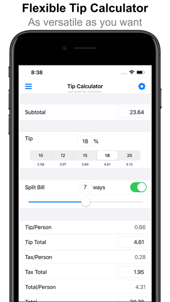 O Calculadora de Gorjeta está disponível para iOS 16.4 e superior. A versão atual do aplicativo é 2.10 e você pode obtê-lo apenas em inglês.